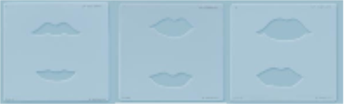 Lip Edge shape - Pochoir contour de lèvres Image Size: width 5" height 4 1/2" each Dinair stencils are transparent for easy, see-thru positioning, flexible counturing, rounded corners, clear durable plastic and laser cut for fine detail Les pochoirs de Dinair sont transparent, flexibles,avec des coins arrondis. Ils sont fait de plastiques durable et sont fait au laser.